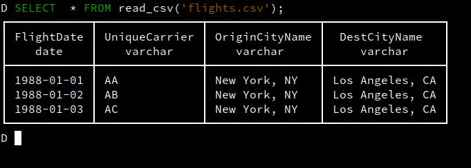 COPY fluege FROM './MeineDuckDB/fluege.csv' (FORMAT 'csv', quote '"', delimiter ',', header 1);