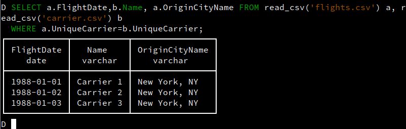 FROM read_csv('flights.csv') a, read_csv('carrier.csv') b