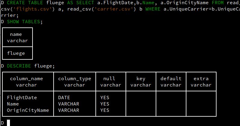 CREATE TABLE fluege AS SELECT a.FlightDate,b.Name, a.OriginCityName