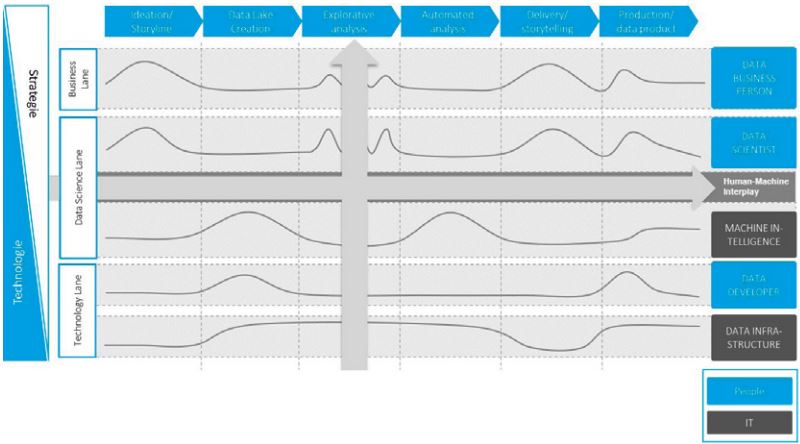 Die Frage nach dem konkreten Vorgehensmodell für KI-Entwicklung und Betrieb stößt in den Unternehmen oft auf Verwunderung. Die meisten Unternehmen sind mit den allerersten KI-Projekten beschäftigt, die oft noch den Charakter eines Experiments haben. Jedenfalls sind sie aber weit davon entfernt, ein ganzes Portfolio von KI-Projekten zu managen, sodass sich die Frage nach festgelegten Arbeitsschritten, entsprechenden standardisierten Ergebnistypen und Quality Gates bis jetzt nicht gestellt hat. Das soll natürlich nicht sagen, dass überhaupt kein Vorgehensmodell verwendet wird. Im Gegenteil wird je nachdem, wo die KI-Initiative organisatorisch aufgehängt ist, das dort etablierte Verfahren verwendet. So finden wir FuE-orientierte Produktentwicklungsverfahren, etwa Design Thinking, BI-orientierte Modelle, wie das CRISP-DM [Wir00], oder natürlich Vorgehen der Anwendungsentwicklung, sowohl „Wasserfall“-artige als auch agile.