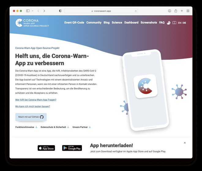 Abb. 1: Die Homepage der Corona-Warn-App-Projekts
