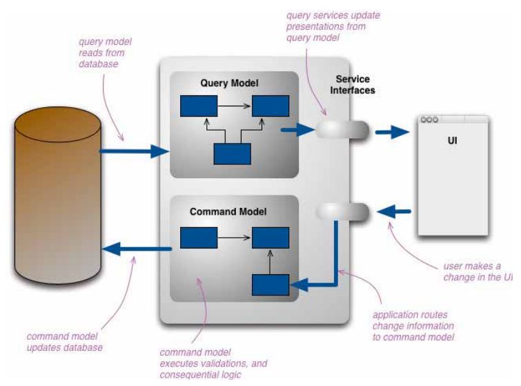 Eine noch stärkere Isolation lässt sich durch physisches Trennen der Lesedaten von den Schreibdaten erzielen, was aber eine Synchronisation erfordert, indem beispielsweise das Schreibmodell bei Änderungen Ereignisse veröffentlicht. Durch diese Segregation können beide Modelle auch unterschiedliche Skalierungsanforderungen erfüllen. So gibt es im Normalfall wesentlich mehr Lese- als Schreibanfragen.