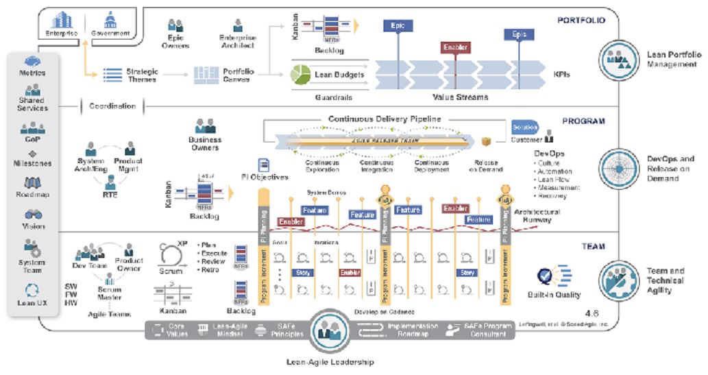 Abb. 7: Wegen der Komplexität vieler Digitalisierungsprojekte empfiehlt sich bei der Digitalisierung die organisations-übergreifende Anwendung von agilen und schlanken Prozessen. SAFe ist ein Beispiel hierfür