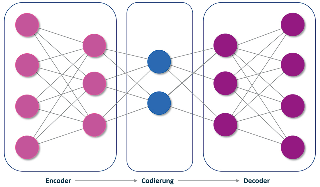 Autoencoder stellen eine spezielle Klasse neuronaler Netzwerke dar. Sie werden darauf trainiert, ihren Input zu rekonstruieren. Im Prinzip bestehen sie aus drei Teilen: dem Encoder, der Codierung und dem Decoder.