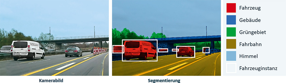Abb. 2: Semantic (Instance) Segmentation klassifiziert Bildinhalte beim autonomen Fahren