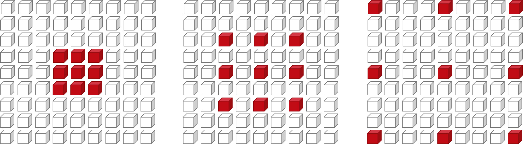 Abb. 5: 3x3-Filter mit den Ausdehnungsraten 1, 2 und 4
