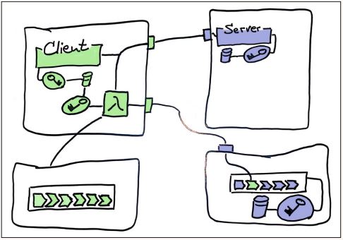 Abb. 1: Asynchrone Datenversorgung sind häufig nur glorifizierte HTTP-Requests zwischen Client und Server. Beide Seiten benutzen üblicherweise ihre eigenen Keystores und die Secrets daraus, um die Requests zu authentifizieren