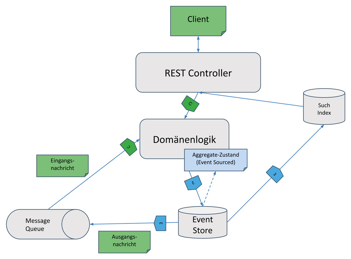 Abb. 1: Beispiel eines CQRS/ES-basierten Architekturentwurfs