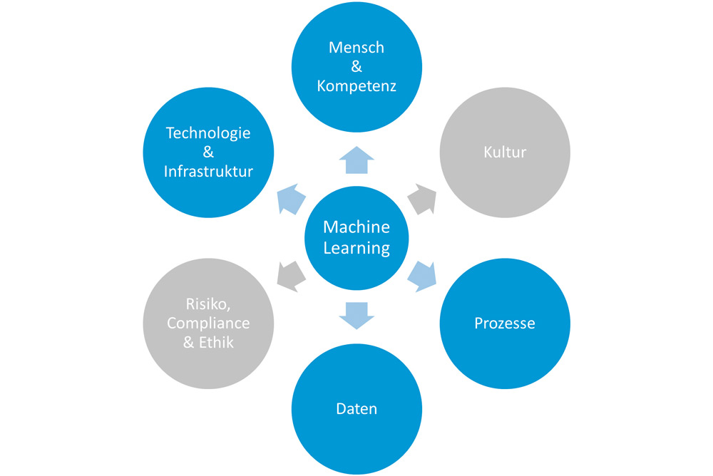 – Veränderungsmanagement: Durch die gezielte Begleitung der Mitarbeitenden und konkrete Unterstützungsangebote werden Verständnis und Änderungsbereitschaft gefördert. - Prozesse: Änderungen, die mit der Adaption von ML einhergehen, beeinflussen immer die Prozesse einer Organisation. Die Prozesse werden aufgrund des systematischen Einbezugs von Datenströmen verändert. Qualität und Pflege der Daten für ML bedeuten auch neue Herausforderungen: Die Kontrolle der Prozesse und der generierten Resultate muss kontinuierlich verbessert werden, damit das ML-System nicht außer Kontrolle gerät und möglicherweise beträchtlichen Schaden anrichtet.