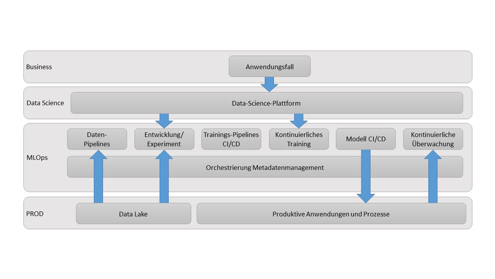 Beim DevOps- beziehungsweise MLOps-Ansatz wird Continuous Delivery immer mitgedacht. Im Fall von Machine Learning hat Continuous Delivery das Ziel, einen einheitlichen Tooling-Ansatz für den Lebenszyklus des maschinellen Lernens bereitzustellen. Besonderer Fokus liegt hierbei auf der automatisierten, skalierbaren Herstellung von KI-Modellen und deren Betrieb. In Data-Science-Projekten liegen Auswahl und Anwendung geeigneter analytischer Methoden häufig im Kern der Betrachtung. Die meisten Data-Science-Projekte verfolgen das Ziel, durch ein Modell Entscheidungen oder Vorhersagen zu treffen, die schließlich in die Wertschöpfungskette einfließen.
