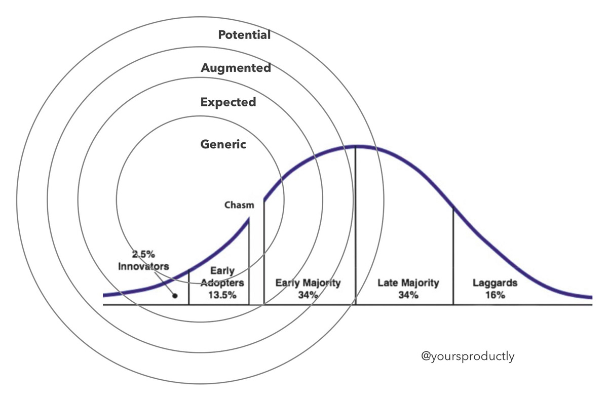 Zudem wird hier vollständig gezielt vernachlässigt, in welchem Schritt das Produkt in seinem Lebenszyklus steht und welche Probleme bestimmte Nutzersegmente ich mit en Funktionalitäten ansprechen möchte. Jedes Nutzersegment hat andere Erwartungen und Bedürfnisse an ein Produkt. Zusammengefasst, es herrscht eine Dissonanz zwischen Produktreife und Marketingversprechen. Dieser Artikel thematisiert zwei Modelle, die Produktmanager dabei helfen, diese Dissonanz zu lösen und großartige Produkte zu entwickeln.