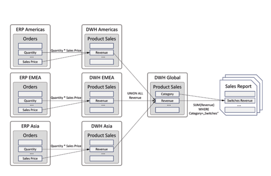 Eine durchgängige Nachvollziehbarkeit von Datenflüssen ist insbesondere für größere Unternehmen mit komplexen Systemlandschaften eine Herausforderung. Ein Beispiel ist in Abbildung 2 dargestellt.