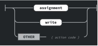 Abb. 1: Die Regel für Anweisungen in MiniMu: Anweisungen können Zuweisungen (Assignments) oder Bildschirmausgaben mittels write sein. In allen anderen Fällen liegt ein Fehler vor