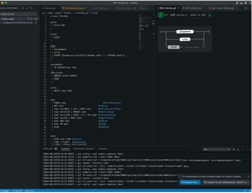 Abb. 3: Visual Studio Code mit integrierter vscode-antlr-Erweiterung zum Bearbeiten und Visualisieren von ANTLR-Grammatiken