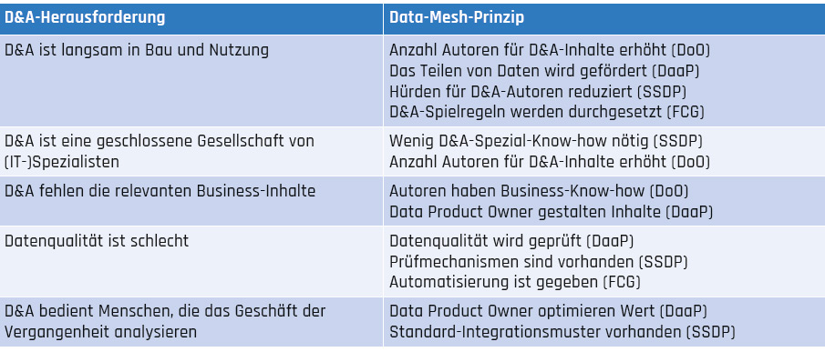 Tab. 1: Zusammenhang zwischen D&A-Herausforderungen und -Prinzipien