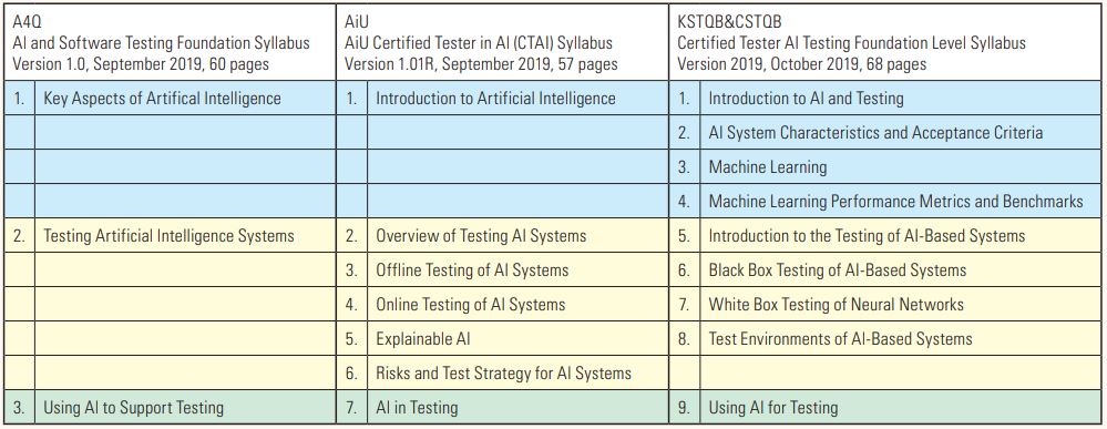 Aus diesem Grund haben sich 2019 drei beziehungsweise vier Interessengruppen nahezu zeitgleich mit dem Test von und mit Künstlicher Intelligenz beschäftigt und unabhängig voneinander Lehrpläne zur Personalzertifizierung dafür entwickelt: