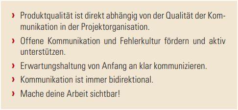 Wir wollen noch einmal klar hervorheben, dass ganz wesentlich für den Erfolg die innere Einstellung (das „Mindset”) der Mitarbeiter ist: nämlich sich stets eigenverantwortlich im Kommunikationsprozess zu sehen. Um das auch dauerhaft zu gewährleisten, muss seitens der Organisation permanent investiert werden. Dabei ist es wichtig, diese Kommunikation zielgerichtet anzubringen (siehe Kasten 1). Damit hat sich für uns