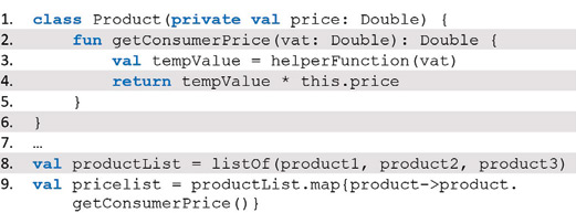 Möglich macht die vereinfachte Schreibweise in Listing 7 in Kotlin und auch in Java seit Version 8 der Einsatz von anonymen Funktionen, die als Parameter an Funktionen wie map weitergereicht werden können. Funktionen, die andere Funktionen als Eingabewerte akzeptieren, werden Funktionen höherer Ordnung genannt. In Java nennt man sie gemeinhin Lambda-Ausdrücke, in Anlehnung an das Lambda-Kalkül, welches in den 30er Jahren erdacht wurde und, um hier den Bogen zu spannen, einen wesentlichen Einfluss auf die Entwicklung des funktionalen Programmierparadigmas hatte.