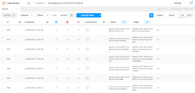 Die automatisiert erzeugten Zuordnungen des LLM werden anschließend vom Data Engineer und dem Domain Expert auf ihre Korrektheit überprüft. Dazu werden zunächst alle Zuordnungen in einer Gesamtübersicht dargestellt (Abbildung 5).