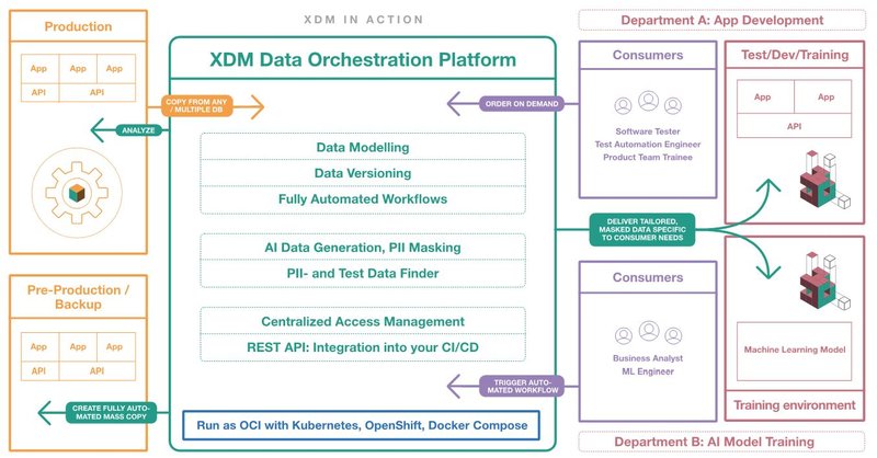- Datenanonymisierung: XDM bietet robuste, zentral integrierte Anonymisierungsfunktionen, die gewährleisten, dass sensible Produktionsdaten gemäß den Datenschutzbestimmungen transformiert werden.