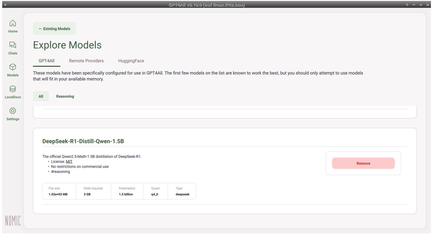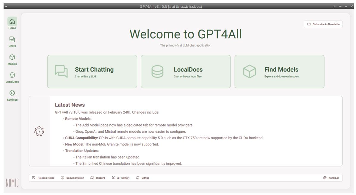Die Oberfläche von GPT4All zeigt sich erwartungsgemäß anders als die von Alpaca (siehe Abb. 5).