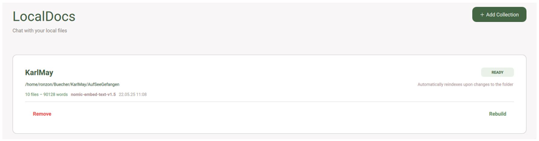 Wähle den Punkt „LocalDocs“, damit du Dokumente, die bei dir lokal gespeichert sind, trainieren kannst. Beachte aber, dass diese als reine Texte oder PDFs vorliegen sollten. Sollte dies nicht der Fall sein, so musst du diese vorher konvertieren (siehe Abb. 8).