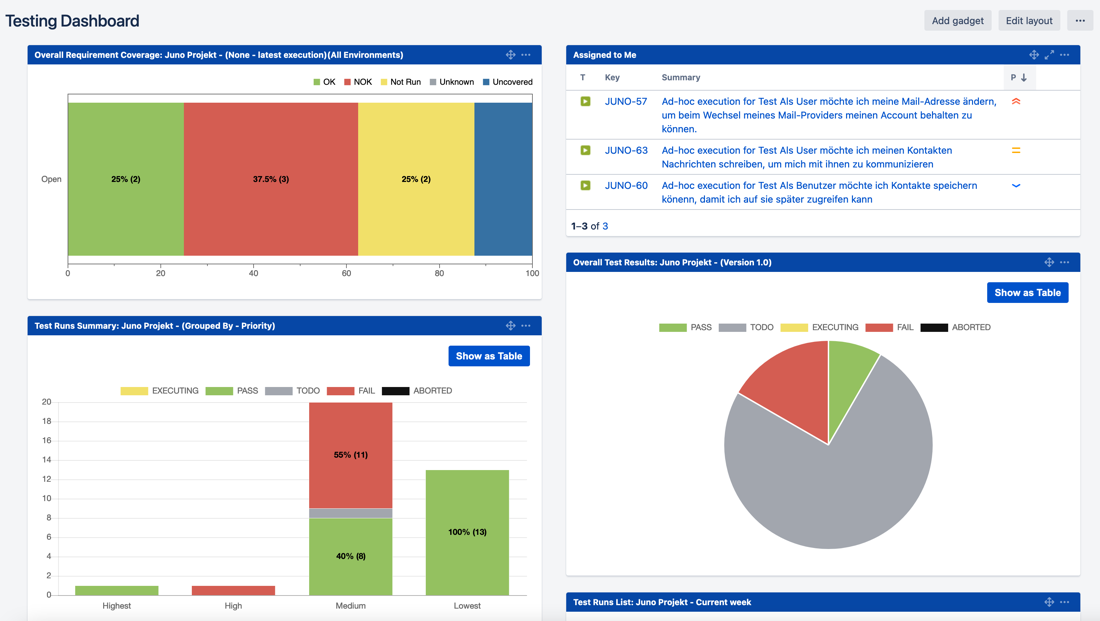 Abb. 1: Beispiel eines Testing-Dashboards in Jira
