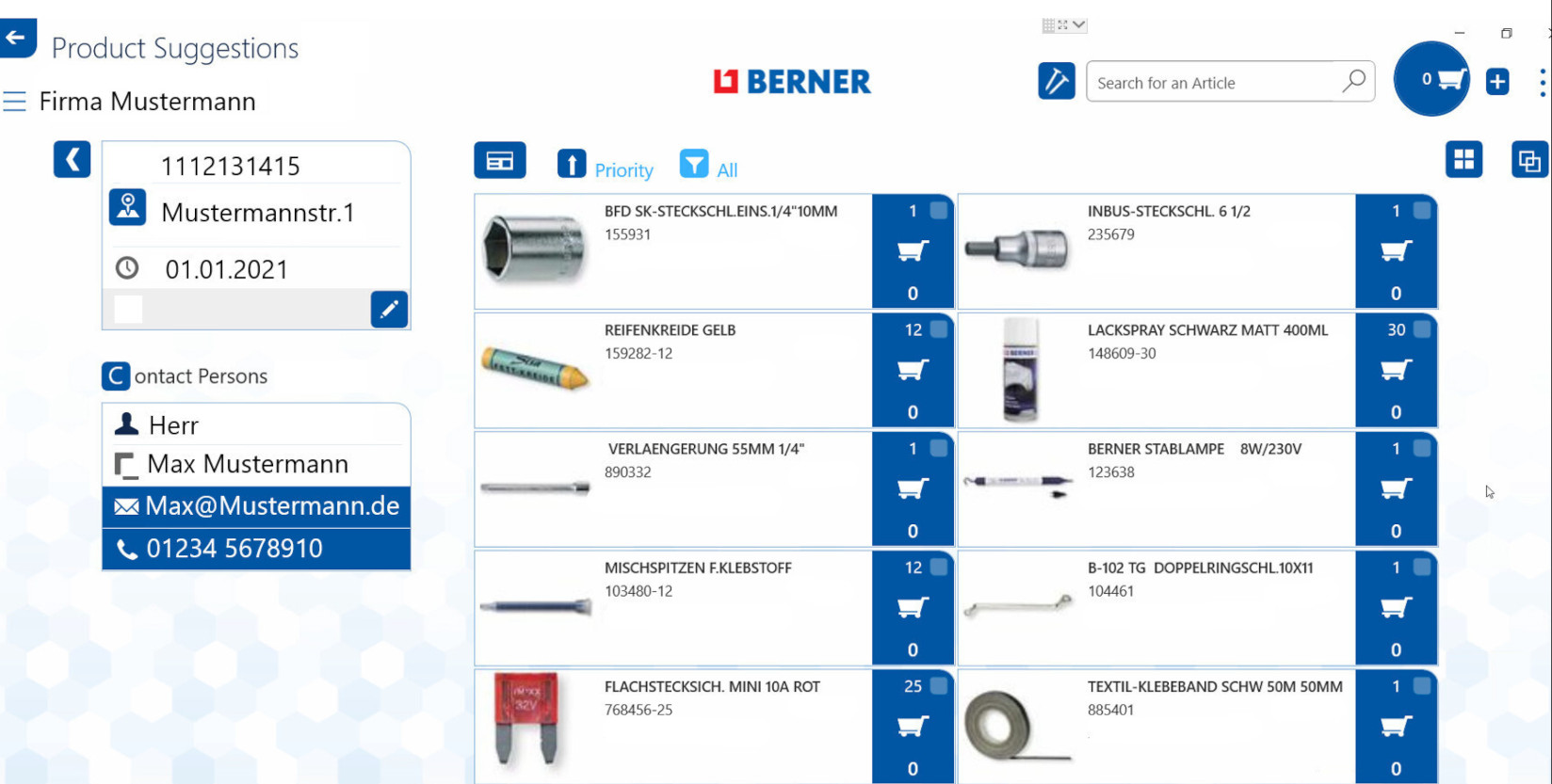 Abb. 3: Anzeige der Produktempfehlungen im Berner Customer Connect (Screenshot)