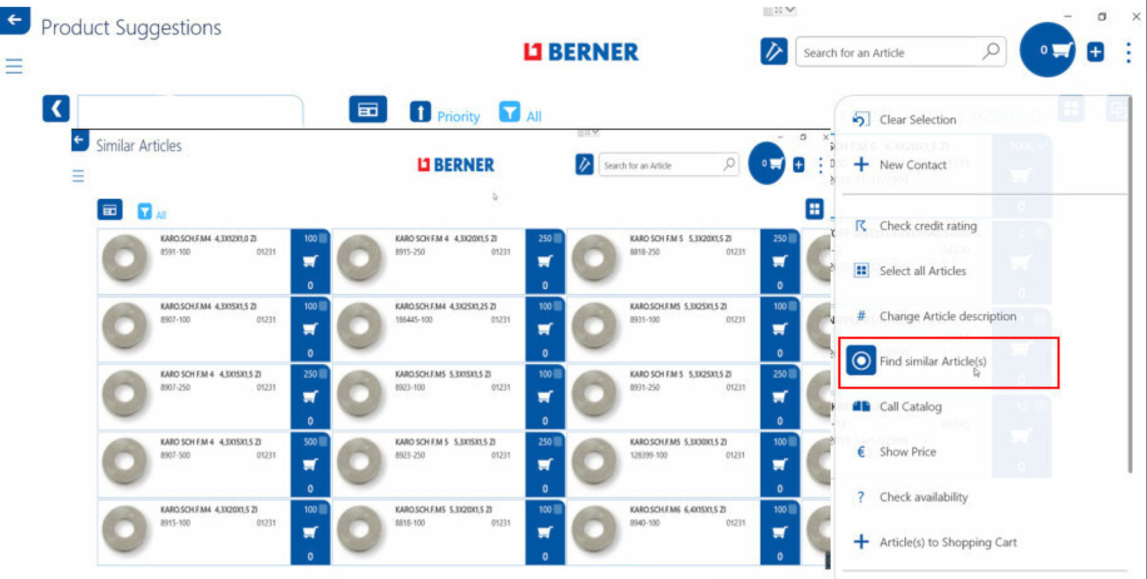 Abb. 4: Anzeige ähnlicher Produkte eines Vorschlags im Berner Customer Connect (Screenshot)