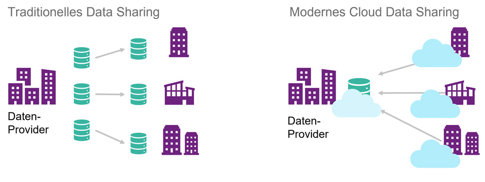 Snowflake bietet mit Secure Data Sharing (Abbildung 4) die Möglichkeit, Daten selektiv und gesichert zwischen Accounts zu teilen. Die Daten werden dabei nicht erneut gespeichert, sodass keine zusätzlichen Kosten anfallen, sofern sich die Accounts in derselben Region befinden.