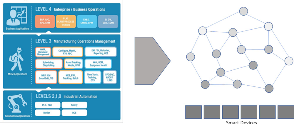 Abb. 1: From the "classic" ISA-95 subdivision of manufacturing operation levels to a federated, modular ecosystem