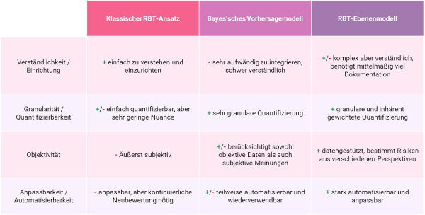Tabelle 1: Die Wahl des RBT-Modells ist von zahlreichen individuellen Faktoren abhängig