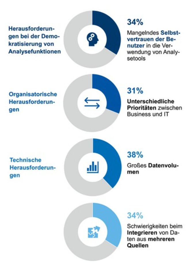 Abb. 1: Herausforderungen der Mitarbeiter in Bezug auf Daten und Analyse-Tools (Quelle: [For20]) BI-SPEKTRUM 3/2020