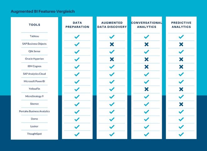 Abb. 2: Vergleich der Augmented-Analytics-Funktionalitäten verschiedener BI-Tools (OPITZ CONSULTING Deutschland GmbH)