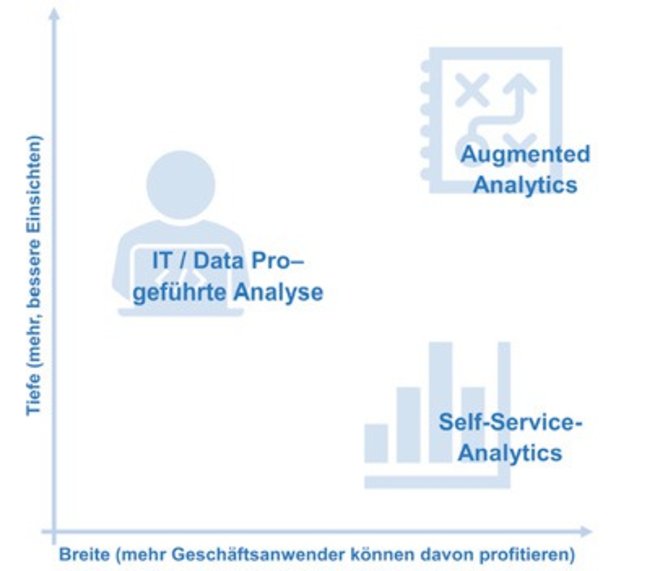 Gartner rief den Begriff „Augmented Analytics“ bereits 2017 ins Leben und sah darin die „Zukunft der Datenanalyse“. Bei Augmented Analytics werden Machine-Learning- und Artificial-Intelligence-Technologien dazu verwendet, die Themen Datenintegration, Datenaufbereitung, Trend-Erkennung und Prognosen intuitiver zu gestalten und teilautomatisiert zu bearbeiten. Ebenfalls 2017 tauchte Augmented Analytics als „Augmented Data Discovery“ im „Hype Cycle for Emerging Technologies“ auf [Gar17].
