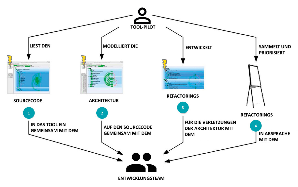 Schritt 3: Tool-Pilot entwickelt Refactorings für die Verletzungen der Architektur mit dem Entwicklungsteam