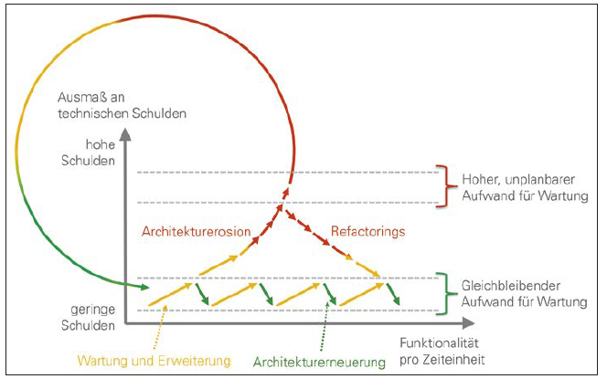 Abb. 1: Entwicklung und Effekt von technischen Schulden