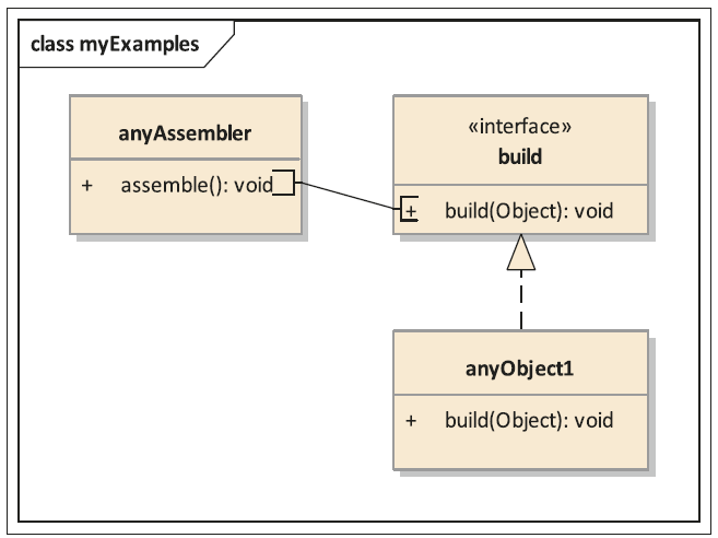 Der Assembler baut hierbei eine konkrete Instanz, idealerweise unter Zuhilfenahme einer Factory, und ruft danach die build()-Methode des gleichnamigen Interface der Instanz auf. So werden alle Instanzen gleichartig aufgebaut. Einzig die verwendeten Objekte unterscheiden sich. Diese muss der Assembler ebenfalls über die Factory ermitteln. Benötigt man mehrere abhängige Objekte, wie im anyObject1 aus Abbildung 5, lässt sich die Methode zum einen mehrfach aufrufen. Zum anderen können die Entwickler etwas eleganter eine Art Sammelobjekt darüber schalten, auf dem alle benötigten Instanzen zunächst gesammelt und dann durch nur einen Aufruf an anyObject1 übergeben werden.