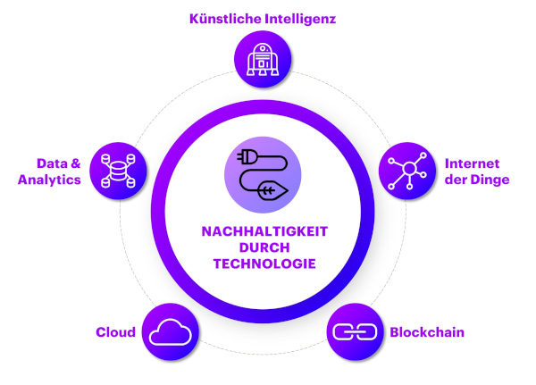 Viele Organisationen setzen in ihren Nachhaltigkeitsstrategien auf die Basistechnologien Künstliche Intelligenz (KI), Cloud, Data Analytics, Internet der Dinge (Internet of Things, IoT) und Blockchain, um sie in der Praxis erfolgversprechend zu kombinieren. Durch den steten technologischen Fortschritt haben diese Technologien in den letzten Jahren den nötigen Reifegrad erreicht, um quer durch alle Industrien zur Erreichung der Nachhaltigkeitsziele beizutragen: