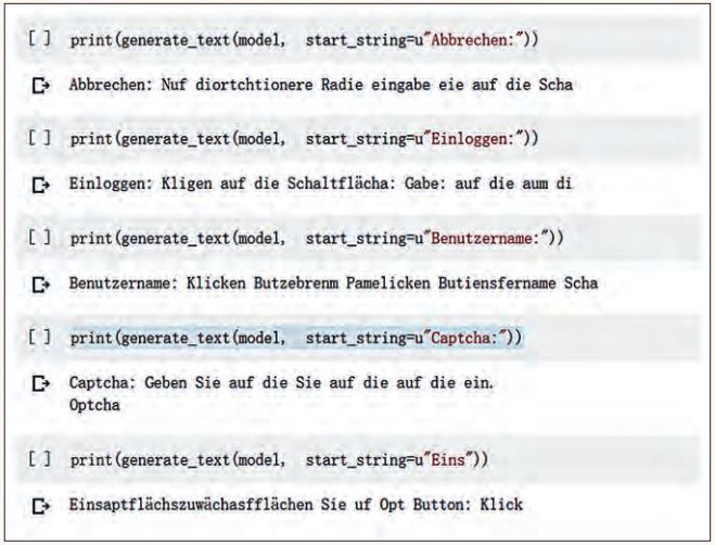 Wenn wir zum Beispiel das Wort „Captcha:“ eingeben, gibt das KI-System die folgende Antwort aus: