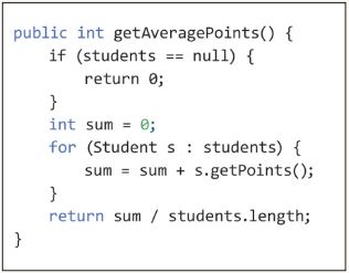 Listing 1: Methode getAveragePoints() der Klasse Exam