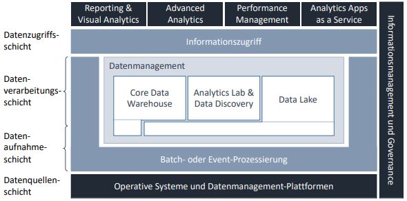 Im Zuge der Modernisierung vieler Analytics-Landschaften wurden insbesondere in den letzten Jahren schlankere DWH-Architekturen (zum Beispiel auf Basis von In-Memory-Datenbanken) umgesetzt und zugleich um Big-Data-Konzepte (zum Beispiel Hadoop) erweitert. Technisch gesehen konnten somit Daten in nahezu beliebigem Format (polystrukturiert) deutlich schneller nach ihrer Entstehung in die täglichen Entscheidungsaufgaben integriert werden.