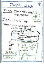 Es gilt, eine Jury aus Management und Publikum zu überzeugen. Der eigentliche Pitch ist kurz, die Teilnehmer sollten alles in maximal zehn Minuten präsentieren. Oft braucht es in der Vorphase hier ein bisschen gutes Zureden oder Tipps, wie eine tolle Präsentation aussieht. Teams, die ihre Präsentation vorab üben und mit verteilten Rollen vortragen, sind hier meist im Vorteil.