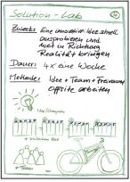 Wir haben bewusst auf PowerPoint verzichtet, um dem Charakter der initialen Idee und der Veränderbarkeit des noch ganz jungen Prozesses gerecht zu werden – frei nach dem Motto: Überzeugen kann man Experten durch frühzeitige Einbindung und Partizipation. Der Lab-Prozess beinhaltet neben dem eigentlichen vierwöchigen Lab auch den vorherigen Ideenfindungsprozess und die Verarbeitung der Ideen nach der Durchführung des Labs.