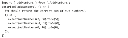 ChatGPT denkt sogar daran, eine Testbibliothek zu nutzen und unsere zu testende Funktion per Import-Statement einzubinden. Für das zweite Beispiel nehmen wir eine weniger komplexe Funktion zum Addieren von zwei Zahlen in TypeScript an, siehe Listing 3.