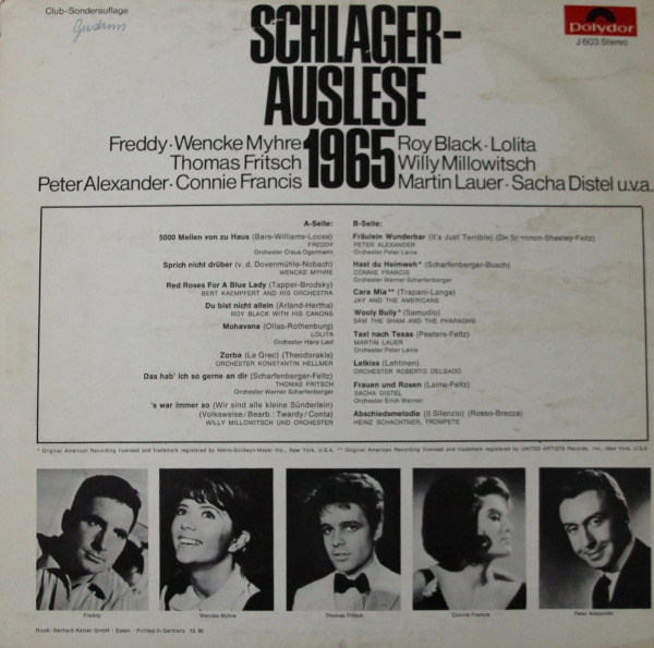 Abb. 4: Rückseite der LP „Schlagerauslese 1965“