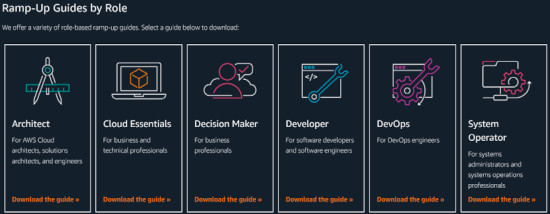 Wer sich bei dem großen Angebot verloren fühlt, steigt am besten mit einem spezifischen Lernpfad ein, bei dem die Themen in einer sinnvollen Reihenfolge in einzelnen Kursen behandelt werden. Eine andere Möglichkeit bieten die themen- und rollenspezifischen kurzen Ramp-up-Guides [AWSRAMP]. Diese erleichtern besonders bei den weiterführenden Zertifizierungen die systematische Lernplanung (s. Abb. 2).