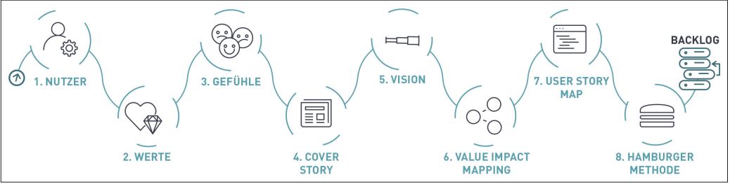 Abb. 1: In acht Schritten von der Vision zum Backlog