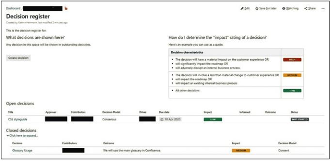 Abb. 3: Entscheidungsprotokoll in Confluence