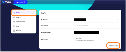 Sollten Sie eine vollständige Löschung Ihrer Daten und Ihres Kundenkontos wünschen, setzen Sie sich bitte mit uns via Mail an kundenservice@sigs-datacom.de in Verbindung. Bitte beachten Sie, dass Sie Ihr Konto nach einer Löschung nicht reaktivieren können und alle Daten verloren gehen. Zudem können Sie ihren Account auch in den Profileinstellungen selbst löschen. Gehen Sie dazu in Ihren Account von Yatta unter Profile https://yatta.de/account/profile und dann auf "Delete account".